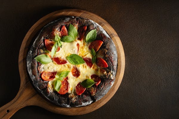sos pomidorowy, mozzarella, fontina, provola, gorgonzola, parmezan -